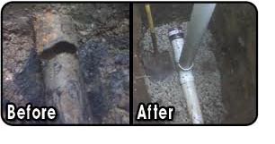 Residential Metro Atlanta Georgia sewer lines are generally 4 inches in diameter, more than adequate to handle the average waste load of a typical home. Depending on the age of the home, the sewer line may be constructed of different materials. Much older homes often featured lines made of a hardened clay. While this material had very smooth interior walls and allowed for easy flow of waste, it was obviously flawed in that the clay would frequently break with underground settling or root growth, and was particularly susceptible to root penetration at the joints. In most cases with older homes (30-50 years old), cast iron was the material of choice for sewer line installations. Cast iron was much better then clay pipe in many ways: far greater strength, better sealed joints, and longer life span. As with any metal buried in the ground however, cast iron eventually revealed it's weakness after many years: tree roots. Cast iron sewer lines were joined in piecesby inserting one end of the pipe into the next via a hub (a flared end of the pipe). Then oakum (a hemp-like material) was pressed into the space around the inside pipe. Then melted lead was poured over the oakum to seal everything up. This method was durable, but over time the lead separated from the oakum and the sewer line joints began to weaken. This allowed roots to penetrate the line. Also, cast iron is weak against rust, and many years use would often rot out the bottom of the pipes, allowing for all sorts of problems. This rusting would also weaken the walls of the pipe, and crushed cast iron sewer lines are now a common problem. When cast iron is used today, which is rare, bands of rubber and steel are used to connect pieces together.